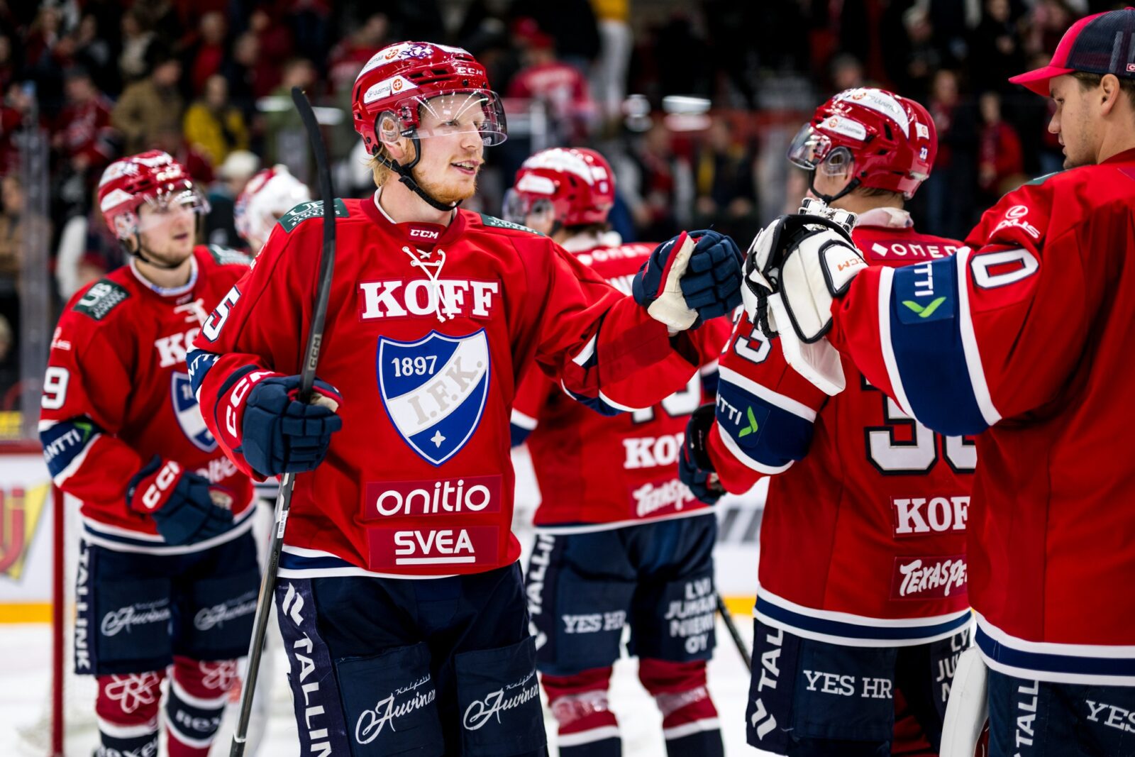 14 Oskari Manninen – 85 Bruno JalastiLoukkaantuneet/sairastuneet: Niko Hovinen (day-to-day), Jori Lehterä (day-to-day), Einari Luhanka (1 viikko),Otto Somppi (2 viikkoa), Jesse Seppälä (2 viikkoa), Juuso Ikonen (3 viikkoa), Panu Mieho (4 viikkoa), Niklas Nykyri (4 viikkoa), Juhani Jasu (2 kuukautta), Petteri Nurmi (toistaiseksi)Ilari Melart ja Petr Kodýtek ovat pelikiellossa. Melart joutuu olemaan sivussa vielä tämän illan matsin. Kodýtek puolestaan kärsii rankkua seuraavat seitsemän ottelua. Aron Kiviharju edustaa Suomea alle 20-vuotiaiden MM-kisoissa.HIFK tiedottaa runkosarjan aikana loukkaantumisista pääsääntöisesti ottelupäivänä kokoonpanon julkistuksen yhteydessä. Liigan, pelaajayhdistyksen ja tietosuojavaltuutetun yhdessä laatimien sääntöjen mukaisesti pelaajien terveyteen liittyviä tietoja ei kerrota julkisuuteen. Pelaajien poissaoloista kerrotaan sen hetken arvioitu toipumisaika. Arvio saattaa muuttua toipumisaikana ja kulloinkin ilmoitetaan sen hetkinen tilanne.