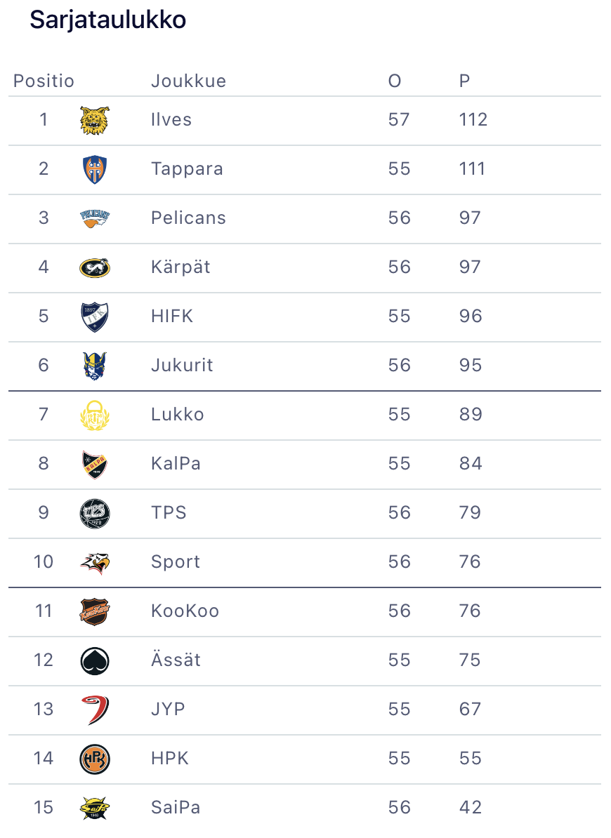 Ei muutoksia kokoonpanoonHIFK ei tee muutoksia kokoonpanoonsa sitten eilisen ottelun.Tasaisen vahvasti suorittaneesta joukkueesta nostetaan erikseen esiin vielä hyökkääjä Julius Nättinen, joka lähtee Oulun otteluun kahdeksan ottelun pisteputkessa. 7. helmikuuta käynnistyneen putken aikana Nättinen on merkkauttanut tehot 6+5=11.HIFK:n maalilla tänäänkin aloittava Roope Taponen on päässyt niin ikään erinomaiseen iskuun. Kolmessa viimeisessä matsissa "Tapsa" on päästänyt selkänsä taakse yhden maalin kussakin. Yhteenlaskettu torjuntaprosentti kolmessa edellisessä startissa on huima 95,83.