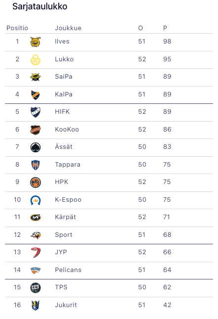 Joukkue pelaa tänään lauantaina viikon toisen matsinsa. Eilen perjantaina stadilaiset ottivat Nordiksella täydet kolme sarjapinnaa kaatamalla TPS:n lukemin 3–2.Lauantain matsiin matkataan Kouvolaan KooKoon vieraaksi. Ottelu alkaa klo 17.00.Alkuillan ottelun voit myös katsoa suorana MTV Katsomossa tai kuunnella Ilmari Pitkäsen tulkitsemana Classic Hitsin taajuuksilla mutkattomasti HIFK-sovelluksessa ottelusivulla.Kuntopuntarin ykkönenKooKoo on ollut vuoden 2025 eniten sarjapisteitä Liigassa kerännyt joukkue. 16 pelatusta ottelustaan kouvolalaiset ovat ansainneet 39 pojoa ja jääneet vain kertaalleen pisteittä. Ainoa suora tappio tämän kalenterivuoden puolella tuli keskiviikkona, kun Kärpät kaatoi KooKoon Oulussa maalein 2–1.Silmiin pistävää on ollut KooKoon osumatarkkuus. Joukkue on tehnyt tämän vuoden puolella huimat 76 maalia, kun toiseksi eniten maaleja viimeistellyt joukkue Lukko on osunut 58 kertaa vastustajan verkkoon.HIFK on samalla otannalla kerännyt 26 pistettä. Suoria tappioita on tullut kuusi.Tämän kauden keskinäisissä kohtaamisissa sarjapisteet ovat menneet niukasti KooKoolle 5-4. Lokakuussa KooKoo haki lisäpisteen Stadista voittamalla rankkareilla lukemin 4–3. Marraskuussa KooKoo voitti kotonaan 4–1, mutta viimeisin kohtaaminen joulukuussa päättyi HIFK:n 5–1-voittoon.Tämän illan virettä mittaillaan joukkueiden runkosarjan viimeisessä kohtaamisessa Kouvolassa klo 17 alkaen.  MAALIVAHDIT 30 Roope Taponen 92 Niko Hovinen (varalla)HYÖKKÄÄJÄT 10 Kristian Vesalainen – 21 Jori Lehterä “C”– 81 Iiro Pakarinen “A” 71 Daniel Mäkiaho – 77 Petr Kodýtek – 43 Vincent Marleau 63 Panu Mieho – 15 Otto Somppi – 88 Joonas Rask 18 Miika Roine – 79 Santeri Hartikainen – 82 Aatu KarjalainenPUOLUSTAJAT 6 Tony Sund – 2 Luke Martin “A” 14 Oskari Manninen – 4 Niklas Nykyri 33 Aron Kiviharju – 3 Ronald Knot 85 Bruno JalastiLoukkaantuneet/sairastuneet: Kasper Lundell (day-to-day), Petrus Palmu (day-to-day), Micke-Max Åsten (day-to-day), Ilari Melart (1 viikko) Oliver Larsen (1-2 viikko), Juhani Jasu (2 viikkoa), Leo Komarov (2-3 viikkoa), Jesse Seppälä (2-4 viikkoa), Petteri Nurmi (toistaiseksi)HIFK tiedottaa runkosarjan aikana loukkaantumisista pääsääntöisesti ottelupäivänä kokoonpanon julkistuksen yhteydessä. Liigan, pelaajayhdistyksen ja tietosuojavaltuutetun yhdessä laatimien sääntöjen mukaisesti pelaajien terveyteen liittyviä tietoja ei kerrota julkisuuteen. Pelaajien poissaoloista kerrotaan sen hetken arvioitu toipumisaika. Arvio saattaa muuttua toipumisaikana ja kulloinkin ilmoitetaan sen hetkinen tilanne.