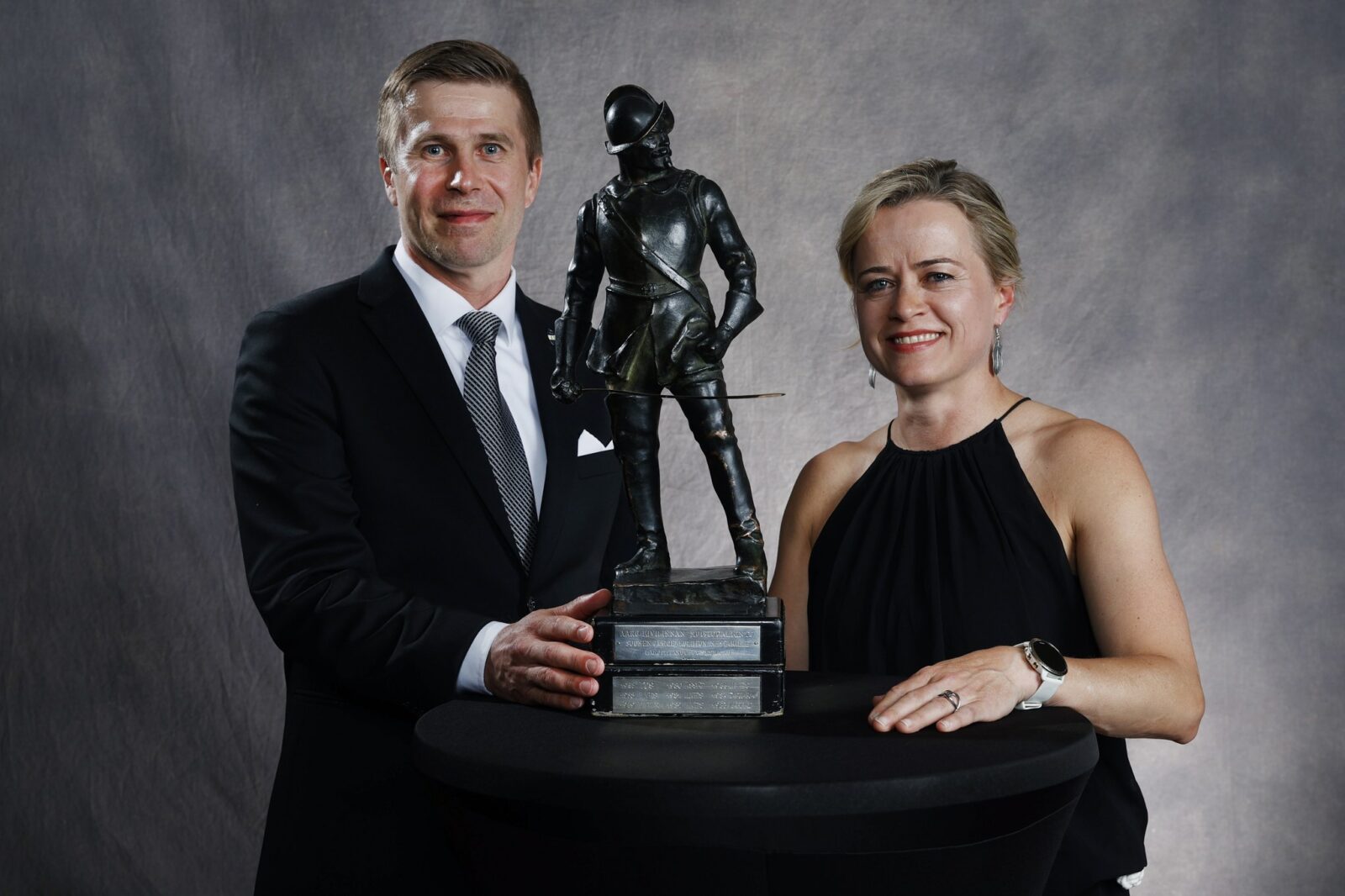 Pokaalin kävivät pokkaamassa HIFK:n junioreiden kehitysjohtaja Kari Kalto ja Gimmojen manageri Johanna Sandqvist.