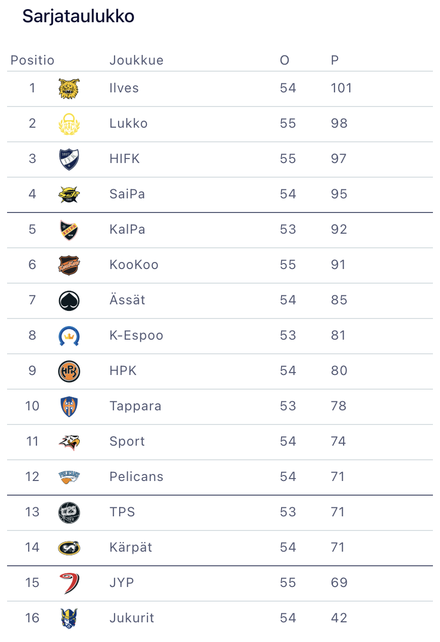 HIFK:n kolmen matsin viikko huipentuu tänään Espoossa. Stadilaiset lähtevät alkuillan matsiin viiden ottelun mittaisessa voittoputkessa. Voittamalla tänään HIFK:lla on mahdollisuus nousta sarjassa sijalle kaksi.Kiekko-Espoo - HIFK -matsi alkaa klo 17.00. Alkuillan ottelun voit myös katsoa suorana MTV Katsomossa tai kuunnella Ilmari Pitkäsen tulkitsemana Classic Hitsin taajuuksilla mutkattomasti HIFK-sovelluksessa ottelusivulla.HIFK tänäänEilisen ottelun pelikiellon vuoksi missannut hyökkääjä Jori Lehterä on jälleen mukana. Joukkueensa paras pistemies (7+48=55) kamppailee vielä runkosarjan pistepörssin voitosta.Tolppien välissä tänään aloittaa Niko Hovinen. MAALIVAHDIT