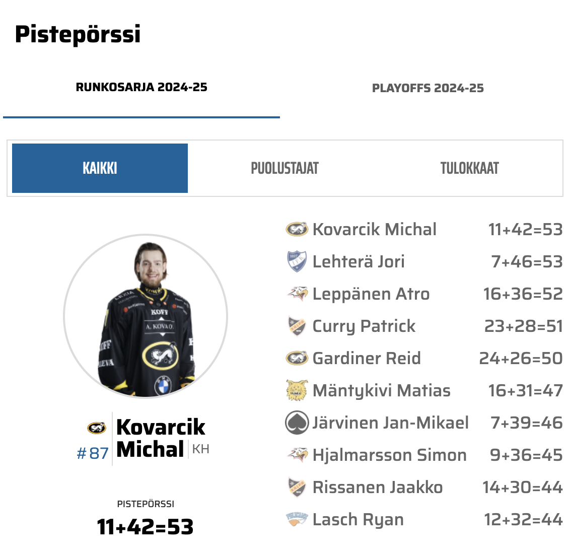 52 Petrus Palmu – 21 Jori Lehterä “A”– 81 Iiro Pakarinen “A”