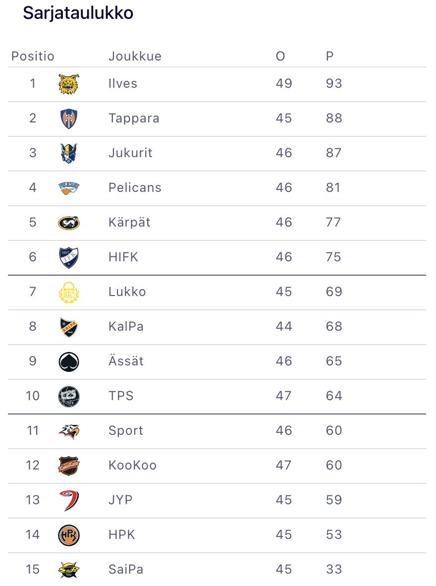 83 Einari Luhanka – 55 Kasper Kotkansalo Loukkaantuneet / sairastuneet: Petteri Lindbohm (1-2 viikkoa), Joona Lehmus (4 viikkoa), Aron Kiviharju (6-8 viikkoa)Puolustajat Ilari Melart ja Oskari Manninen sekä hyökkääjä Teemu Tallberg ovat sivussa loppukauden. Lue tiedote.HIFK tiedottaa runkosarjan aikana loukkaantumisista pääsääntöisesti ottelupäivänä kokoonpanon julkistuksen yhteydessä. Liigan, pelaajayhdistyksen ja tietosuojavaltuutetun yhdessä laatimien sääntöjen mukaisesti pelaajien terveyteen liittyviä tietoja ei kerrota julkisuuteen. Pelaajien poissaoloista kerrotaan sen hetken arvioitu toipumisaika. Arvio saattaa muuttua toipumisaikana ja kulloinkin ilmoitetaan sen hetkinen tilanne.